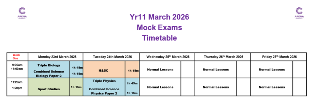Year 11 March 2026 Mock Exam Timetable