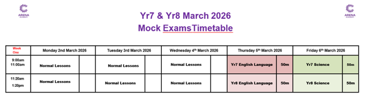 Year 7 and Year 8 March 2026 Mock Examinations Timetable
